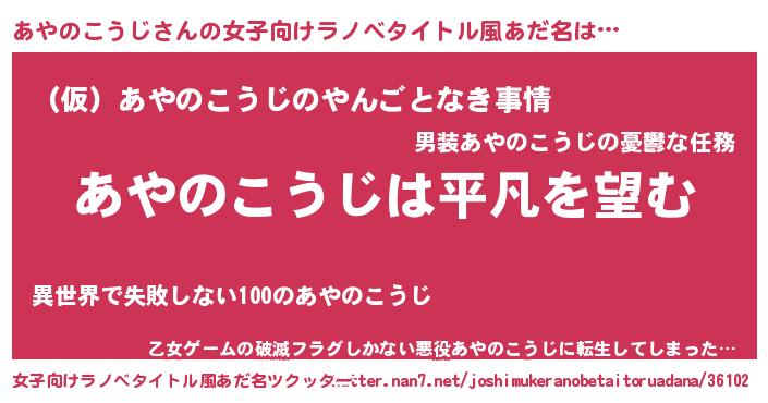 | 意味不明あだ名 | 『とにかく怪しいあやのこうじ』 |