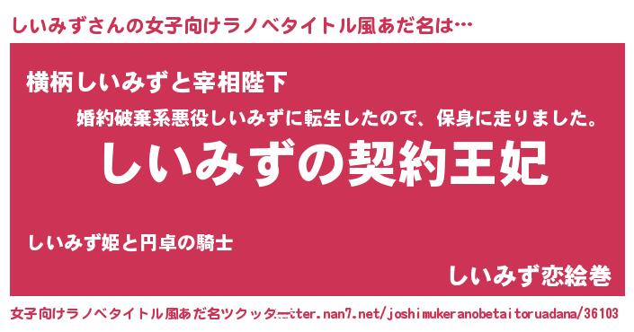 | 男性向けラノベタイトル風あだ名 | 『誰もが恐れるあのしいみずが、ぼくの専属メイドになるようです。』 |