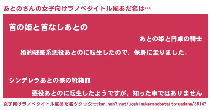 | 男性向けラノベタイトル風あだ名 | 『アトノスレイヤー』『あとのの憂鬱』 |