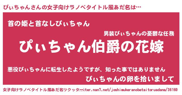 | 男性向けラノベタイトル風あだ名 | 『やはりぴぃちゃんの青春ラブコメはまちがっている 』 |
