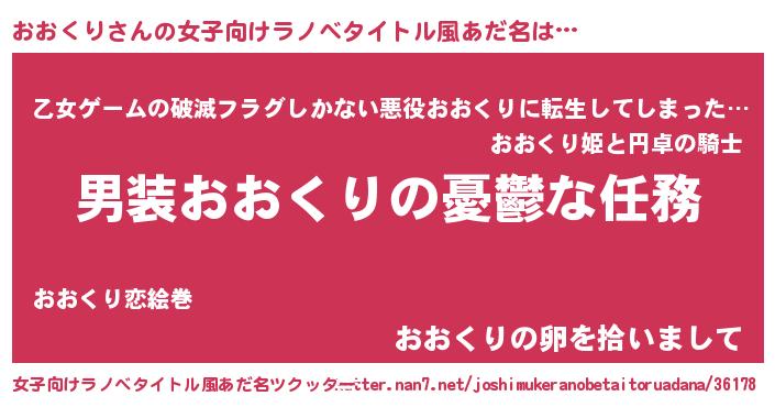 | 胡散臭い通販商品みたいなあだ名 | 『あなたにだけ特別に提供する100年もののヴィンテージワイン…その名も「おおくり」』 |