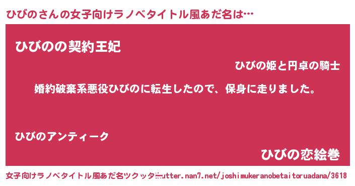 | 胡散臭い通販商品みたいなあだ名 | 『絶対に幸福をもたらす水素水…その名も「ひびの」』 |