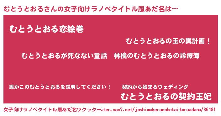 | 男性向けラノベタイトル風あだ名 | 『魔弾の王とむとうとおる』 |