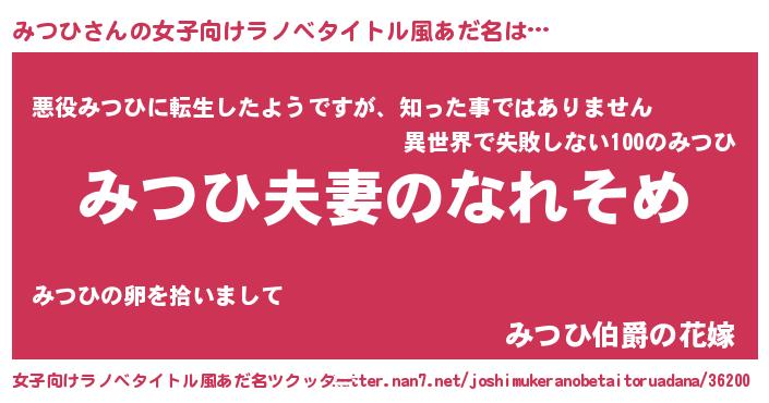 | ヘコむあだ名 | 『牛乳』『みつひ(苦笑)』『みつを』 |
