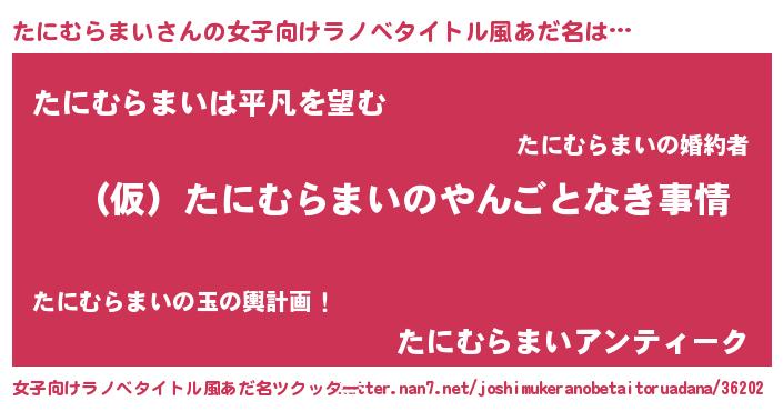 | 胡散臭い通販商品みたいなあだ名 | 『必ず成功するブレスレット…その名も「たにむらまい」』 |