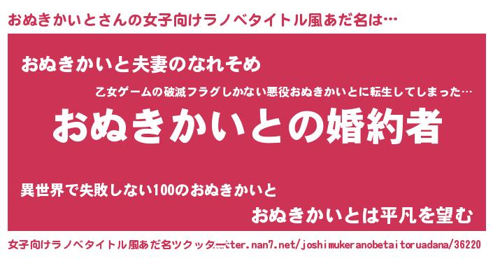| 男性向けラノベタイトル風あだ名 | 『うちの娘の為ならば、俺はもしかしたらおぬきかいとも倒せるかもしれない。』 |