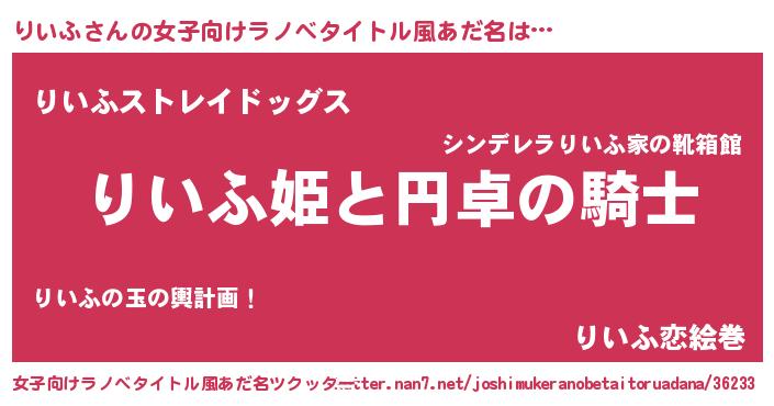| 胡散臭い通販商品みたいなあだ名 | 『モテモテ間違いなし水晶球…その名も「りいふ」』 |