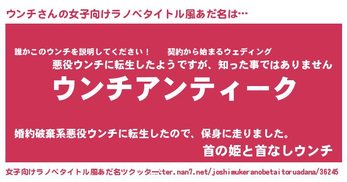 | 男性向けラノベタイトル風あだ名 | 『魔法科高校のウンチ』 |