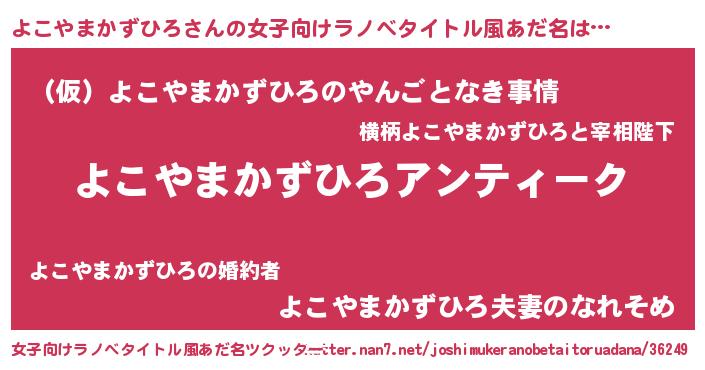 | 胡散臭い通販商品みたいなあだ名 | 『テレビで話題の高麗人参…その名も「よこやまかずひろ」』 |