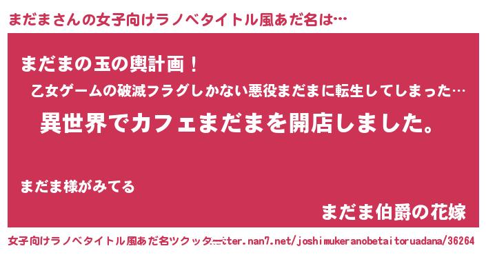 | 男性向けラノベタイトル風あだ名 | 『誰もが恐れるあのまだまが、ぼくの専属メイドになるようです。』 |