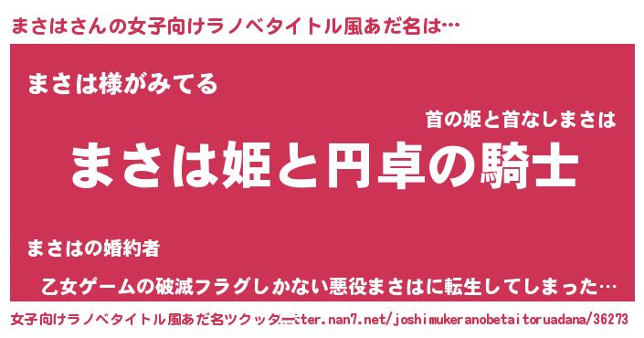 | 男性向けラノベタイトル風あだ名 | 『まさはの憂鬱』『はたらくまさはさま!』 |
