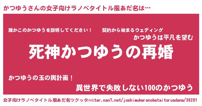 | 男性向けラノベタイトル風あだ名 | 『ノーゲーム・ノーカツユウ』 |