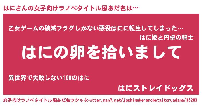 | 男性向けラノベタイトル風あだ名 | 『はにの嫁は女の子じゃないと思った?』 |