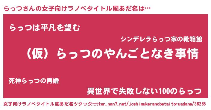 | 男性向けラノベタイトル風あだ名 | 『らっつの憂鬱』『緋弾のラッツ』 |