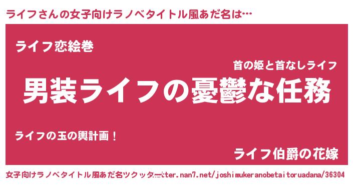 | ヒーロー風カッコイイあだ名 | 『愛の使者ライフ』『ウルトラライフマン』 |