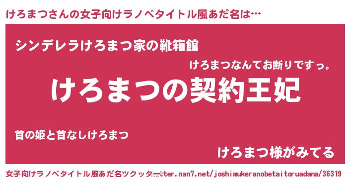 | 男性向けラノベタイトル風あだ名 | 『けろまつという概念が存在しない退屈な世界 』 |