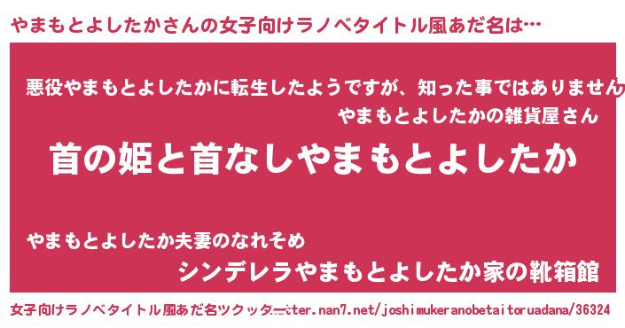 | 男性向けラノベタイトル風あだ名 | 『はたらくやまもとよしたかさま!』 |
