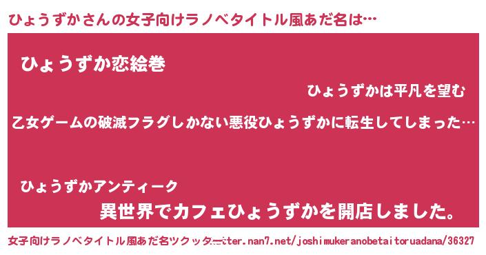 | 意味不明あだ名 | 『住所不定無職ひょうずか(11歳)』 |