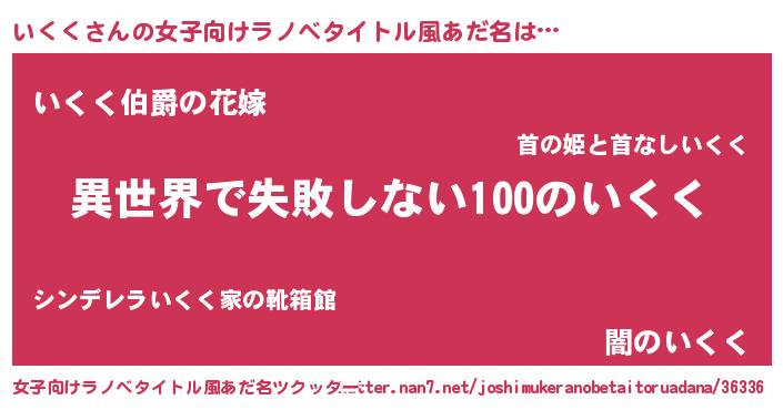 | 胡散臭い通販商品みたいなあだ名 | 『絶対に幸福をもたらす水素水…その名も「いくく」』 |