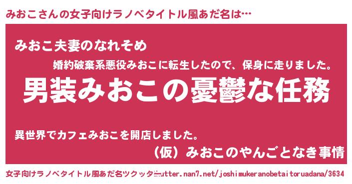 | 男性向けラノベタイトル風あだ名 | 『うちのみおこが世界を掌握している!』 |