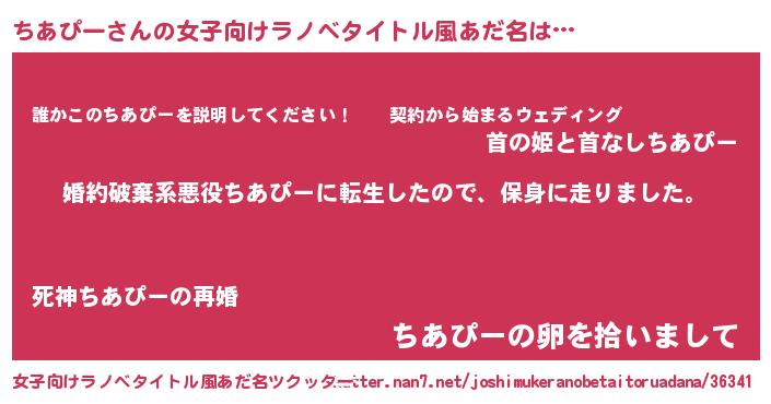 | 男性向けラノベタイトル風あだ名 | 『転生したらちあぴーだった件』 |