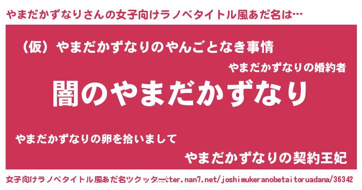 | 男性向けラノベタイトル風あだ名 | 『Re:やまだかずなりから始める異世界生活』 |