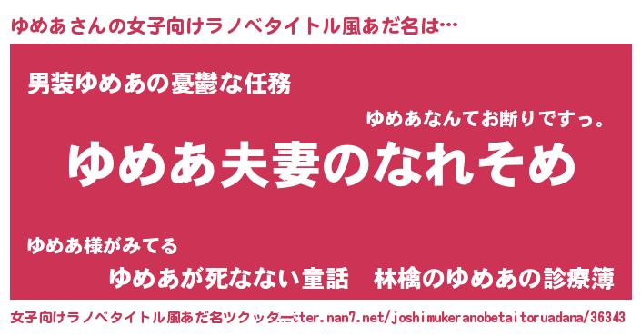 | 意味不明あだ名 | 『眠気覚ましガムゆめあ味』『自称ゆめあ』 |