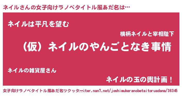| 男性向けラノベタイトル風あだ名 | 『ネイルの憂鬱』 |