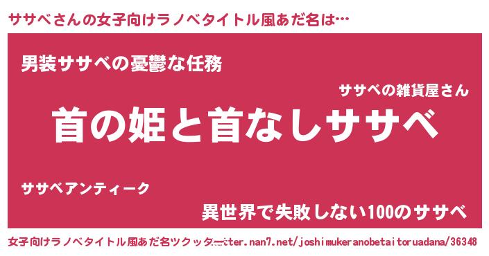 | 胡散臭い通販商品みたいなあだ名 | 『来世でも幸せになれる健康食品…その名も「ササベ」』 |