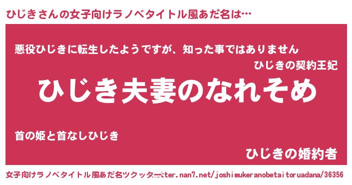 | 男性向けラノベタイトル風あだ名 | 『おまえをオタクにしてやるから、俺をひじきにしてくれ! 』 |