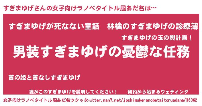 | 男性向けラノベタイトル風あだ名 | 『うちのすぎまゆげが世界を掌握している!』 |