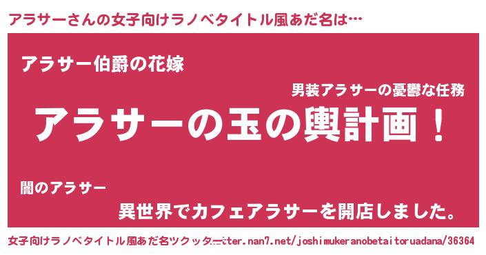 | 胡散臭い通販商品みたいなあだ名 | 『世界が平和になる高級そうな絵画…その名も「アラサー」』 |