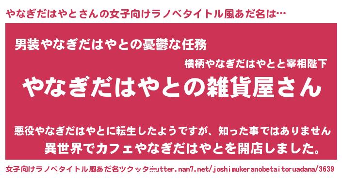 | 男性向けラノベタイトル風あだ名 | 『やはりやなぎだはやとの青春ラブコメはまちがっている 』 |