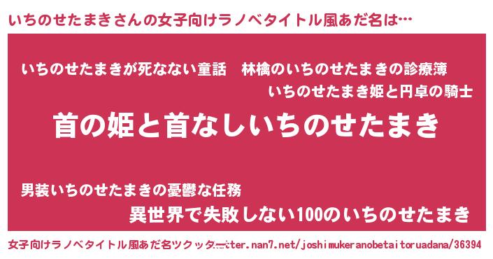 | 意味不明あだ名 | 『住所不定無職いちのせたまき(43歳)』 |
