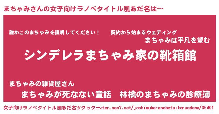 | 胡散臭い通販商品みたいなあだ名 | 『モテモテ間違いなし霊験あらたかなお札…その名も「まちゃみ」』 |