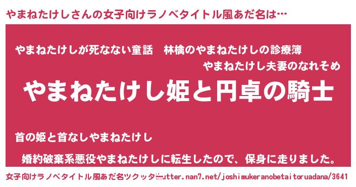 | 男性向けラノベタイトル風あだ名 | 『やまねたけしの憂鬱』 |