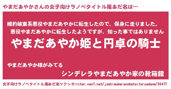 | 胡散臭い通販商品みたいなあだ名 | 『モテモテ間違いなし霊験あらたかなお札…その名も「やまだあやか」』 |