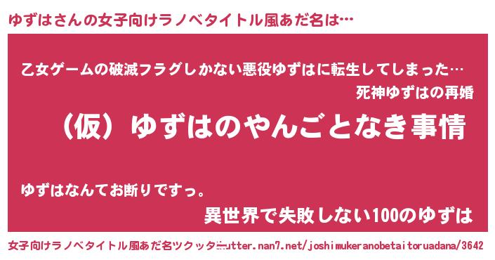 | 男性向けラノベタイトル風あだ名 | 『ゆずはの憂鬱』『魔法科高校のゆずは』 |