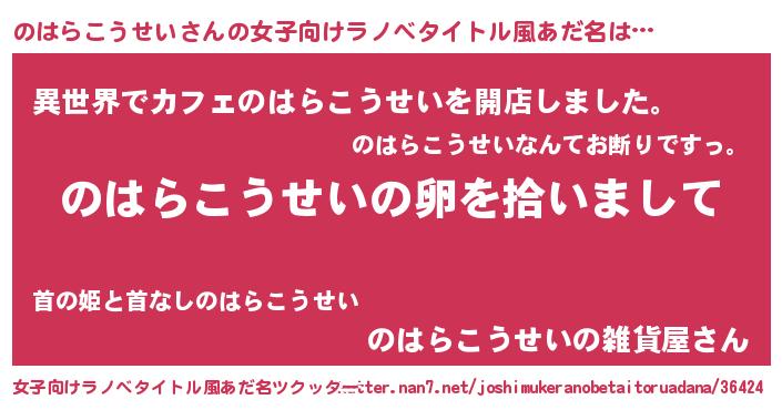 | ヘコむあだ名 | 『のは太郎』『のはらこうせい(苦笑)』 |