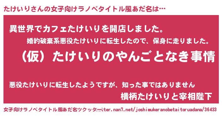 | ヘコむあだ名 | 『たけにー』『たけいり(爆)』 |