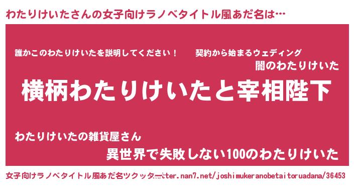 | 胡散臭い通販商品みたいなあだ名 | 『億万長者になれる霊験あらたかなお札…その名も「わたりけいた」』 |