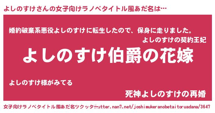 | ファンタジー風あだ名 | 『エターナルヨシノスケー』 |