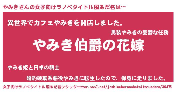 | ファンタジー風あだ名 | 『エターナルヤミキー』『ヤミディッシュ』 |