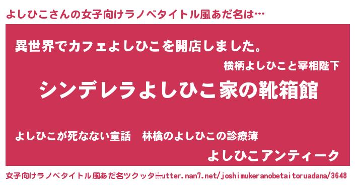 | 胡散臭い通販商品みたいなあだ名 | 『来世でも幸せになれる健康食品…その名も「よしひこ」』 |