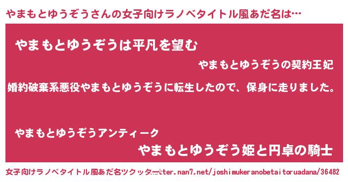| 胡散臭い通販商品みたいなあだ名 | 『伝統あるサプリメント…その名も「やまもとゆうぞう」』 |