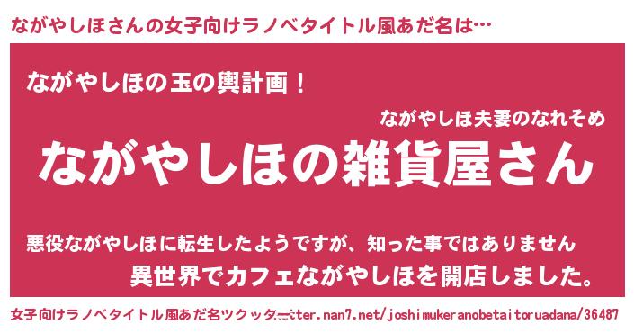 | 男性向けラノベタイトル風あだ名 | 『やはりながやしほの青春ラブコメはまちがっている 』 |