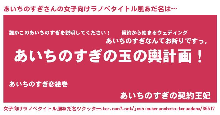| ヘコむあだ名 | 『あいもー』『あいちのすぎ(爆)』 |