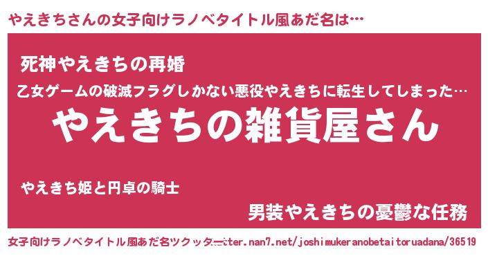 | 胡散臭い通販商品みたいなあだ名 | 『幸せが訪れる高級そうな絵画…その名も「やえきち」』 |