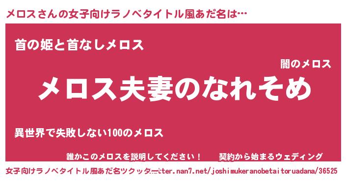 | ヘコむあだ名 | 『メロにゅー』『メロス(笑)』 |