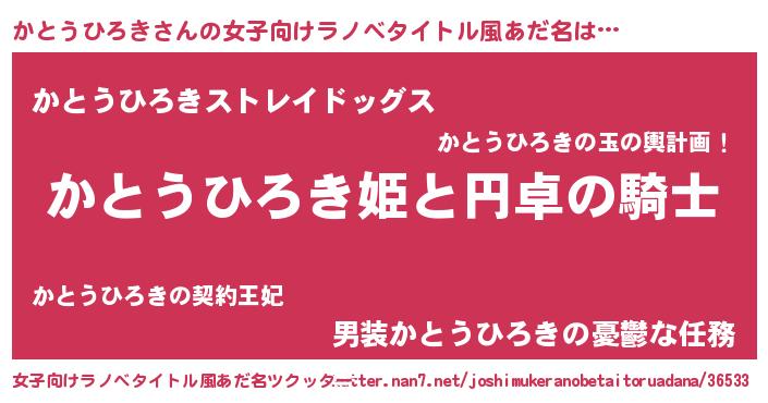 | ヘコむあだ名 | 『かとふぇ~』『かとうひろき(笑)』 |